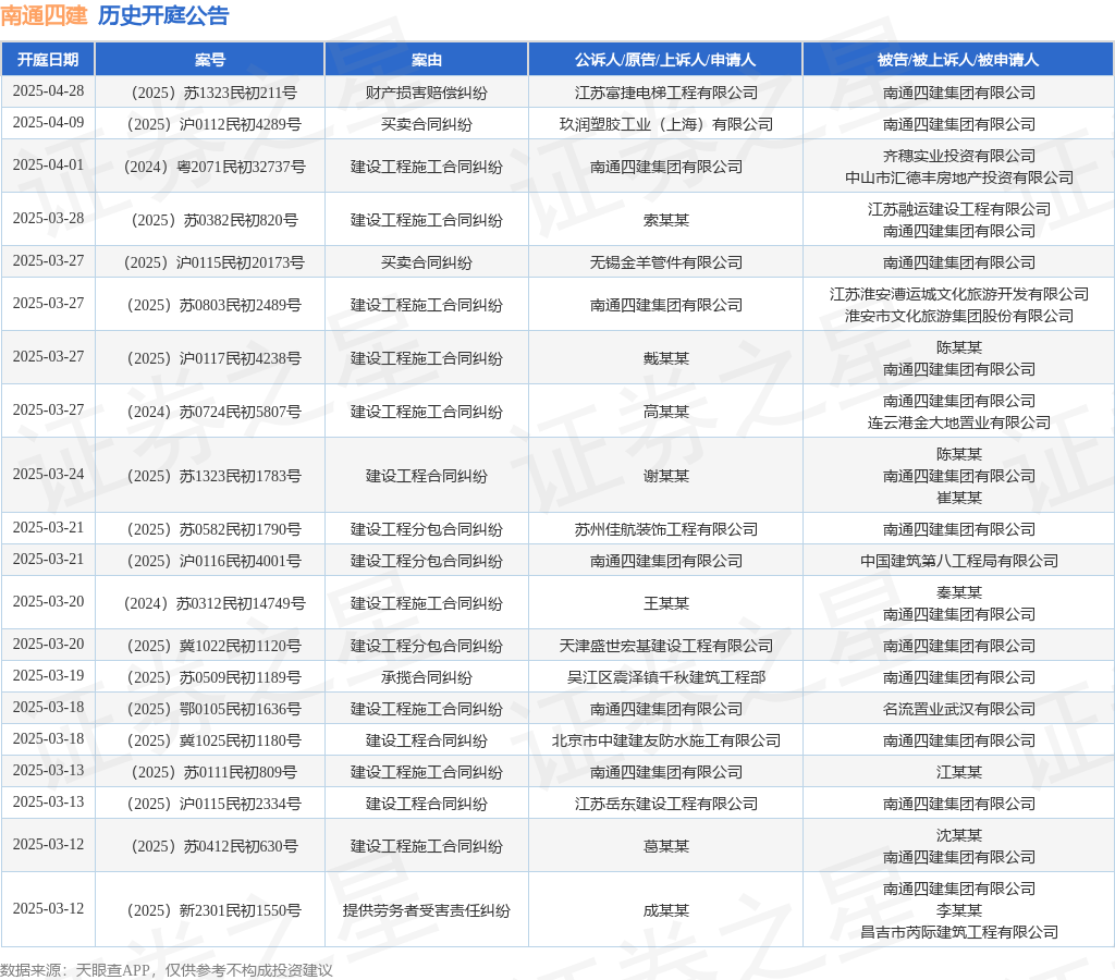 本站消息,根据天眼查APP显示,近日公布了一则南通四建集团有限公司作为被告/被上诉人的开庭公告,详细内容如下: